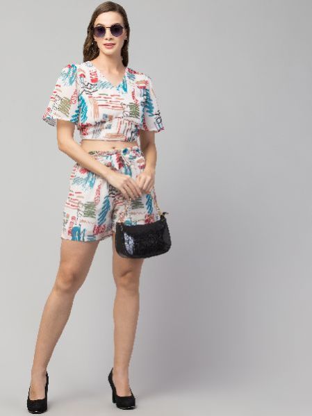 We offer a complete product range of Women's Printed Butterfly Sleeve Tie Back Crop Top & Shorts