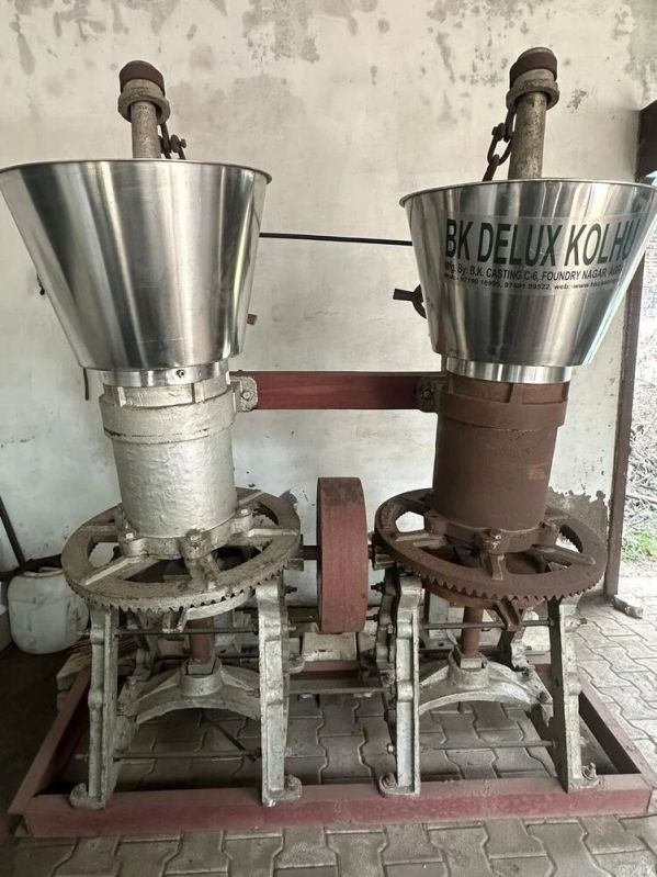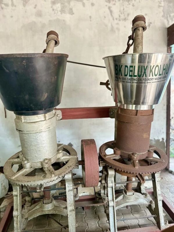 A Kachi Ghani Kolhu Machine is a traditional oil extraction unit used for cold-pressing seeds like mustard, sesame, and groundnut to produce high-quality, unrefined oil. The machine uses a wooden or metal drum, known as the Kolhu, to crush the seeds mechanically without heat, preserving the oil 's natural nutrients, flavor, and aroma. This method ensures that the oil remains pure, rich in antioxidants, and free from chemicals, making it popular for producing health-conscious, natural oils in both small-scale and large-scale production.