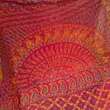 Hand block printing on a fabric is a fascinating process. india has always been renowned for its printed and dyed cotton since the 12th century. the unique art of hand block printing employs skillfully hand carved wooden blocks / metallic blocks to print designs or patterns on a fabric by hand. hand block printing though a simple process requires a lot of skills and expertise. the process is painstaking and time consuming, but the result is always unique and beautiful. In hand block printing, the design is first drawn on wood using a sharp needle and then the desired design is carved using the chisel, hammer, file, nails etc. the printing involves laying the cloth/fabric, which is to be printed, on flat tables and impressions are made using the beautifully carved blocks. in case of direct printing, the block is dipped in the colored dye and impressions are made. in case of resist dyeing, impression of an impermeable material (clay, resin, wax etc) is made on the fabric which is then dyed in the desired shade. the block image remains un printed and reappears in reverse. In the olden days,vegetable dyes are mainly used for block printing. but these days synthetic dyes are used for printing. Hand-printed textiles such as head scarves, quilt covers, tablecloths, prayer mats, pillowcases, handkerchiefs, couch covers, napkins, towels, shirts and turbans are some of the highly priced items.