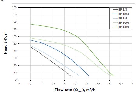 | Maximum delivery head | 55 m | 57 m | 60 m | 80 m | 60 m |