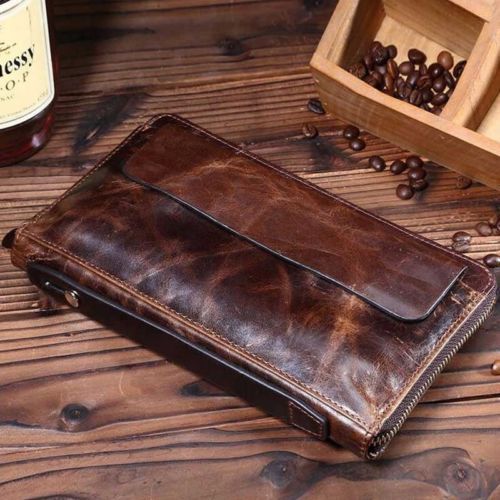 Men's Genuine Leather Business Clutch Zippy Long Handbag Briefcase Phone Wallet