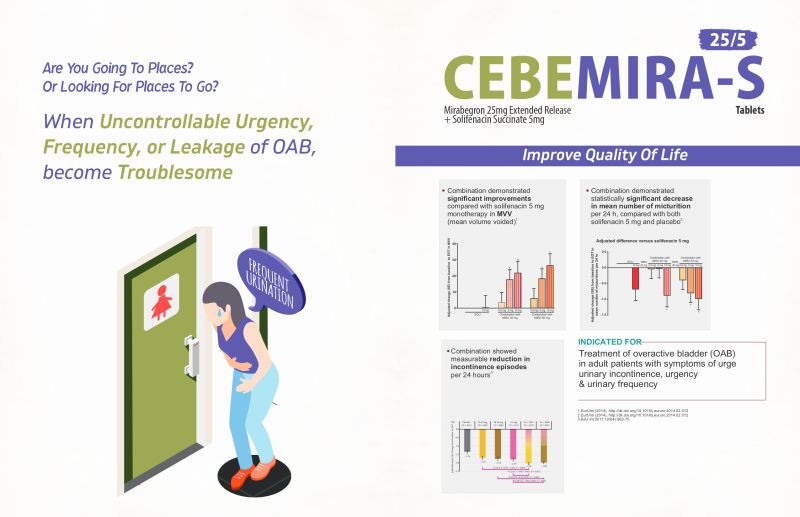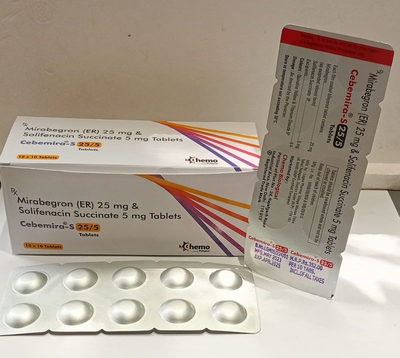 We offer a complete product range of Cabergoline 0.5mg Tablets, Cebemira-S 25/5 Tablets and Mirabegron 25mg Extended Release + Solifenacin 5mg