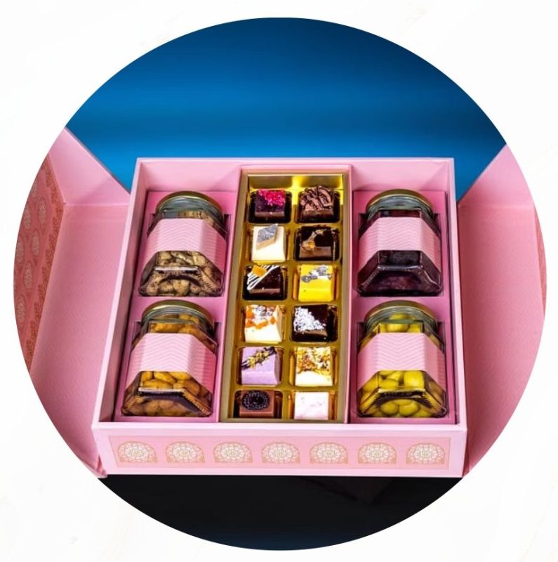 Step into a world of grandeur and sweetness with this exquisite gift box, crafted to resemble majestic palace doors. A celebration of tradition and indulgence, it makes every occasion memorable.
