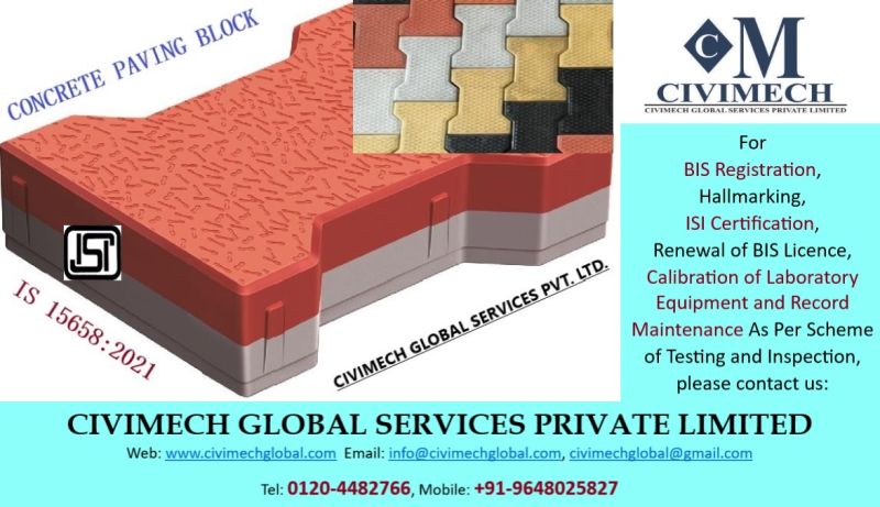 If you intend to obtain BIS (Bureau of Indian Standards) registration or ISI (Indian Standards Institution) mark certification for Precast Concrete Block for Paving / Paver Block / Interlocking tiles under IS 15658:2021, you'll need to follow a specific process outlined by BIS. Here are the general steps involved.