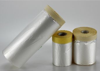 Auto Used Pretaped Masking FilmPre-taped Masking Film is perfect protection for use in areas where you want to catch drips and overspray. Tape is applied along one edge of high-density masking film. This film has a unique coating which helps create cling to the surface protected – even in windy conditions or with spray applicators.