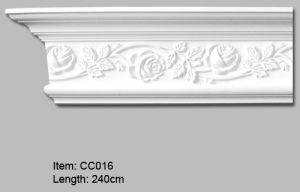 This Cornice Moulding is designed with the Rosette, we have designed internal crown corner CC016-23, and external crown corner CC016-21 for this PU Cornice Moulding, so it is easy for the decoration and jointing without miter cutting for you....