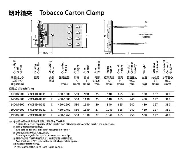 Avail from us Hydraulic Carton Clamp that can handle and stack a variety of goods packed in cartons, particularly re-dried tobacco cartons. It can handle the task securely and efficiently without working platform. The measurements of Hydraulic Carton Clamp arms can be changed as requested in different working conditions. Furthermore, custom designed tobacco bag clamp for special working conditions in cigarettes factory can be made available.