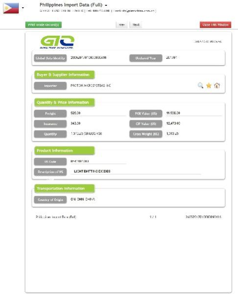 Solar Module Philippines Import Customs Data. Those kind of data could help you enhance your overseas business, you could find more potential customers, or monitor the competitors. You can use this data to analyze the global trend. The USA Import data including importers, exporters, quantity, product descrition etc. Purchase Singapore Trade Data, Japan Trade Data, Asia Import Export Data. Providing method:A. The whole database opened in human intelligent query system, not affected by keywords limit; let you keep the industry changes in your hand. B. All information covered by bill of loading and different kinds of analysis report for you saved in your own computerC. You can do the report according to your own requirementsCooperated customers (cover all the global companies direct or indirect related to international trade as follows):The factory has the foreign trade business Import and export trading company Buyers Shipping company Container terminal and port development council International freight forwarding and logistics company Trade credit and insurance agencies Legal and business consulting company Application value:Identify & qualify new suppliersYou can search HS code, commodity name, country of origin, and row by quantity, estimate price and times.Find customers:You can search shipper, consignee and notify party, commodity, brand and tracking customers purchasing habit.Measure market share.