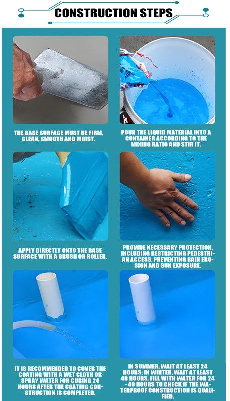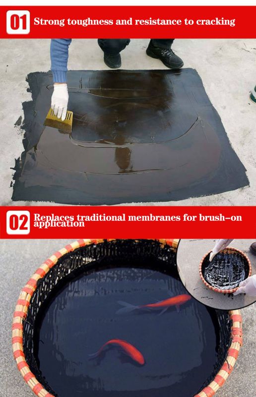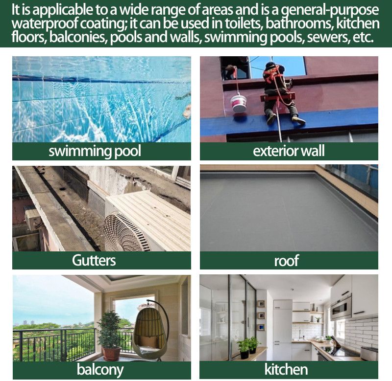 Product Definition: A one-component waterproof coating made with a water-based polyurethane emulsion as the primary film-forming agent, supplemented with fillers and additives. Product Features Environmentally Friendly: Using water as the solvent, it contains no toxic or hazardous substances, has no volatile odor, and is environmentally and human-friendly. Easy Application: This one-component product is ready for use right out of the container, requiring no on-site mixing. It can be applied by brush, roller, or spray. Excellent Adhesion: It can be applied to both wet and dry substrates, maintaining excellent bond strength with a variety of substrates. Reliable Waterproofing: The cured coating is dense, bubble- and pinhole-free, with high elongation and excellent elasticity. It adapts to substrate deformation and effectively prevents water penetration. Weather Resistance: It exhibits excellent resistance to high and low temperatures and aging, remains stable under UV rays, heat, light, and oxidation, and offers a long service life. Good Self-Healing: The coating exhibits a certain degree of creep resistance, allowing it to self-heal leaks caused by minor cracks in the substrate. Scope of application: It is widely used in waterproofing projects such as building roofs, kitchens and bathrooms, basements, swimming pools, pools, canals, etc. It can also be used in municipal projects such as underground pipe corridors, bridges, subways, etc. It can also be used in combination with waterproof membranes to improve waterproofing effects and durability.