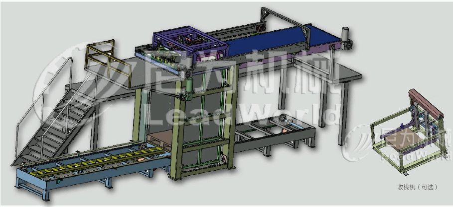Working process :Automatic running process is separated into carton input automaticlly, carton turn automaticlly, section automatic, palletizer, palletize moving, palletizer lift, stack input, palletizer come down, palletizer output, all can finish automaticlly.