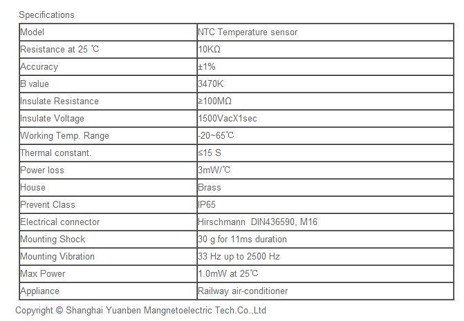 | Tolcrancc Of Sensor | (0.8+0.015T> Ooc, "T” Is Absolute Of The Lest Temperature (the Length Of Immerge Is 22mm); |