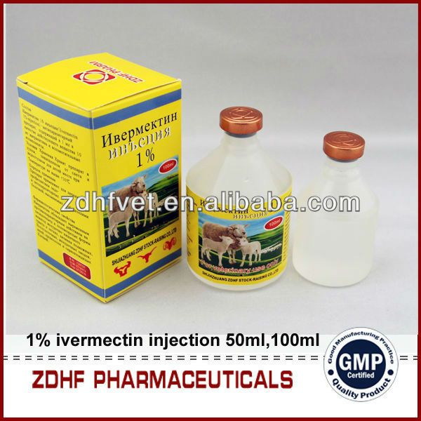 Veterinary medicine parasite drug ivermectin injection 1%compositation: each ml contains: ivermectin 10mg indications: ivermectin injection 1% for the treatment and control of gastro-intestinal roundworms, lungworms, grubs, screwworms, fly larvae, lice, ticks and mites in cattle, sheep, goats and camels. eyeworms:thelazia spp.;gastro-intestinal worms:cooperia spp., haemonchus placei, oesophagostomum radiatus, ostertagia spp., stronchyloides papillosus and trichostrongylus spp.lice:linognathus vituli, haematopinus eurysternus and solenopotes capillatus; lungworms:dictyocaulus viviparus; mites:pseroptes bovis, sarcoptes scabiei var. Bovis;warbles (parasitic stage):hypoderma bovis, h. Lineatum; for treatment and control of the following parasites in pigs: gastro-intestinal worms: ascaris suis, hyostrongylus rubidus, oesophagostomum spp.strongyloides ransomi; lice:haematopinus suis; lungworms:metastrongylus spp.; mites:sarcoptes scabiei var. Suis.Contra indication: ivermectin injection 1% must not be used intramuscularly or intravenously. Do not use on animals in lactation if milk is intended for human consumption. Do not use on dairy animals within 28 days prior to calving if milk is intended for human consumption. Precaution: do not use in ivermectin injection 1%other animal species as severe adverse reactions including fatalities in dogs (collies) may occur. Side-effects: soft tissues swelling at the injection site has been observed. Dosage and administration:for subcutaneous injection only cattle, sheep, goats and camels:1 ml. Per 50 kg. Bodyweight. Pigs:1 ml. Per 33 kg. Bodyweight. Withdrawal period: meat:18days others: 28days storage: store in a dry, dark place between 15c and 25c. Shelf life: three years.