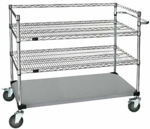 We are offering wire shelving standard wire shelving features four steel poles, 7" to 8 feet in height, with shelves that are usually between 18 to 30 inches deep and two to six feet wide. The shelves have four holes on the corners where the poles insert and little plastic clips keep them connected. The shelves are held on by circular grooves on the poles which are usually spaced one inch apart throughout its length, making it extremely easy for the individual shelves to be moved to any height when the unit is fully assembled without taking apart the unit or moving the other shelves. No tools are required to assemble or disassemble these shelves, although a rubber mallet is useful. Wire shelving is used in a broad range of commercial and home applications. It is often used in restaurant, food service and retail store applications due to its ability to stay clean and resist rust and mold. It is also used by retailers, in industrial applications and in home kitchens as well. Wire shelving is excellent in areas where fire prevention is stressed because its open design allows sprinkler systems to function where solid shelving might block water flow. The all welded shelf construction is supported with architectural wire trusses to provide between 600 lb. And 800 lb. Capacity per shelf. Wire shelving is available in four options: galvanized wire shelves, chrome-plated, stainless steel and plastic coated wire shelving. Shelves can be loaded/unloaded easily from all sides. This open construction allows use of maximum storage space of cube.