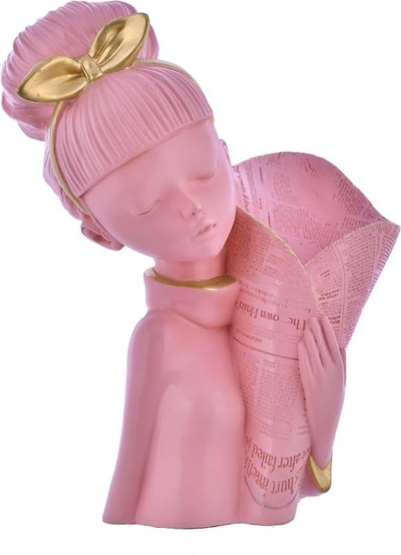 Decorative Flower Pink Lady Face with Basket Statue for Home Decor Showpiece Figurine