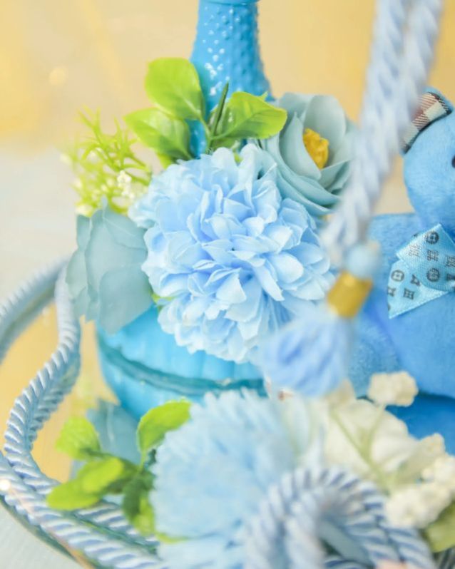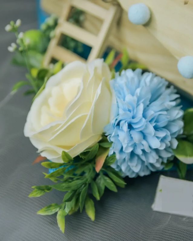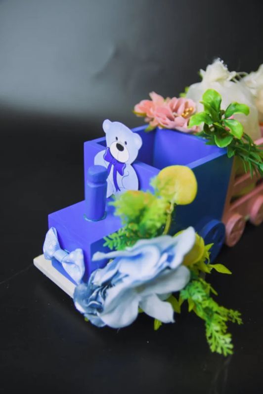 Products provided by the customer and price mentioned includes only decor, balloons and base. Decoration done with Fabric Flowers. Gifts can be arranged for customers on prior notice and intimation. The decor is done on Pinewood platter.
