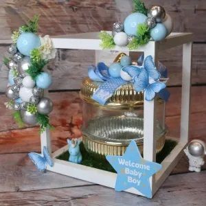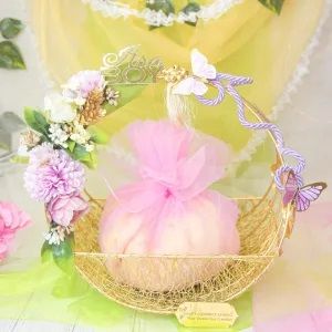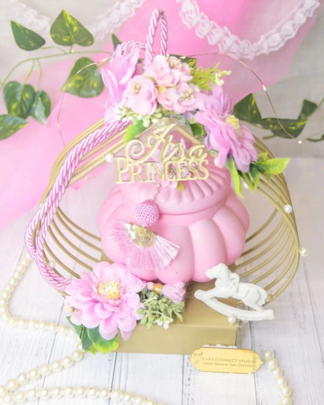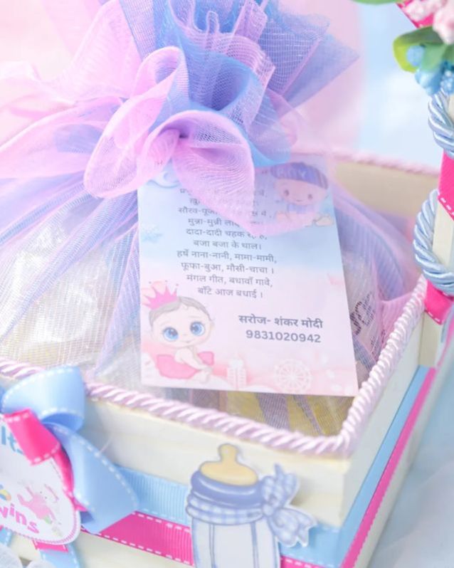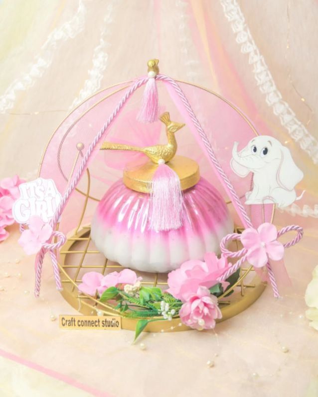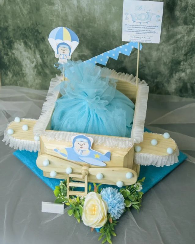 Products provided by the customer and price mentioned includes only decor and base. Decoration done with Fabric Flowers. Gifts can be arranged for customers on prior notice and intimation. The decor is done on pinewood platter.