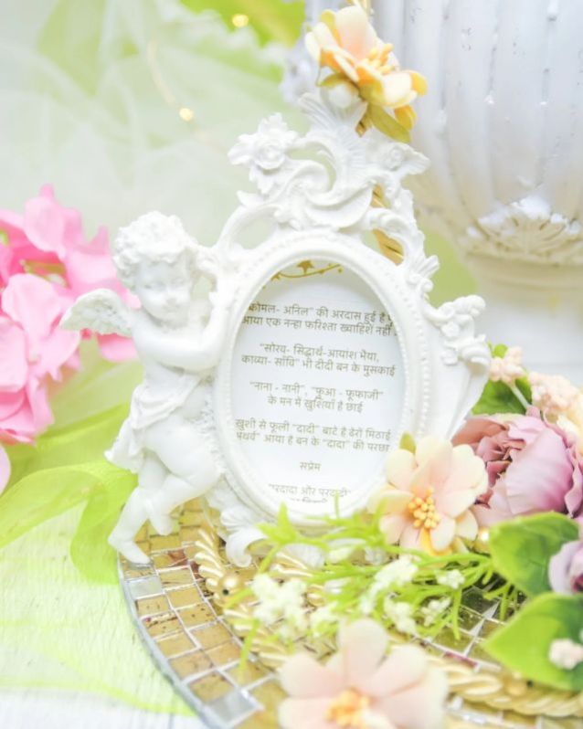 Products provided by the customer and price mentioned includes only decor and base. Decoration done with Fabric Flowers. Gifts can be arranged for customers on prior notice and intimation. The decor is done on Glass Mirror platter. Photo frames provided by Craft Connect Studio for this hamper.