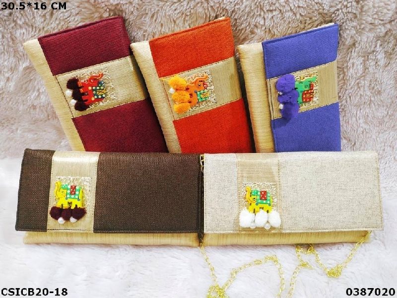 Packaging Details : Raw Silk Ethnic Clutch Bag which has crafted from raw silk, in addition it makes feel special to every women. The design of the bag gives royal look to the clutch bag. Perfect for special Occasion, Party & festive season etc.
