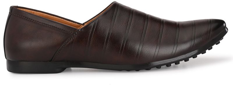 We are a leading Manufacturer and Supplier offering Men's Brown Nagra Sleek Stitch Slip-On Shoes crafted from high-quality Synthetic Leather sourced from India. The Article Code 754BR signifies its unique identity. Designed for Men, this shoe comes in sizes ranging from 6 to 10, ensuring a perfect fit. The PVC sole provides durability and comfort, while the brown upper with subtle vertical stitching exudes style. The brown lining interior adds a touch of elegance, making it ideal for pairing with ethnic wear. Elevate your style with these premium shoes that blend tradition with modern design.