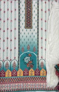 Manufacturer / Trader Of Rayon Dupatta Salwar Suit, Chicken Work Front Side Cotton Salwar Suits, Crepe Digital Print Mirror Work Suit, rayon pure bottom pure organza suit, Pure Roman Silk Suit