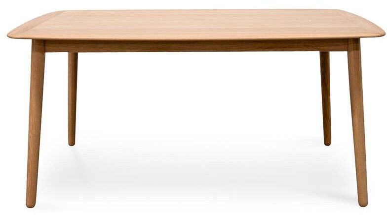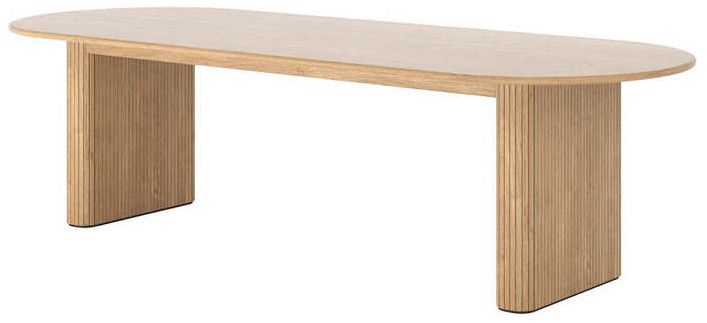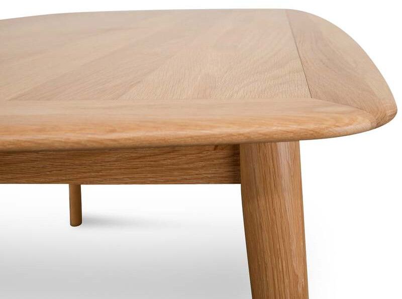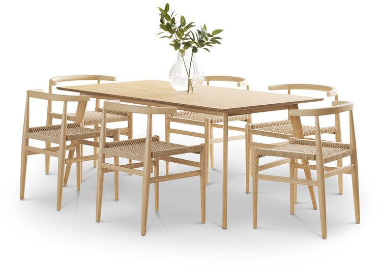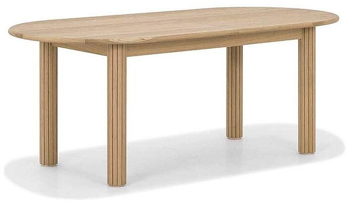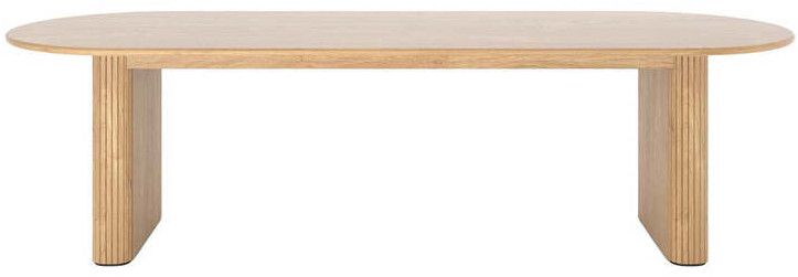 Create a warm and inviting atmosphere during family meals and special occasions with the Norma Extendable Dining Table featuring a natural finish. This stunning piece of furniture showcases a blend of American white oak veneer and European beech legs for a touch of Scandinavian elegance. The geometric base and curved edges add a modern flair. This dining table is perfect for entertaining 6 to 8 guests. Assemble with ease and elevate your dining space to stylish and sophisticated.