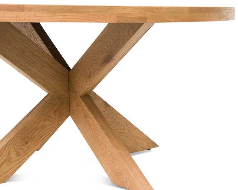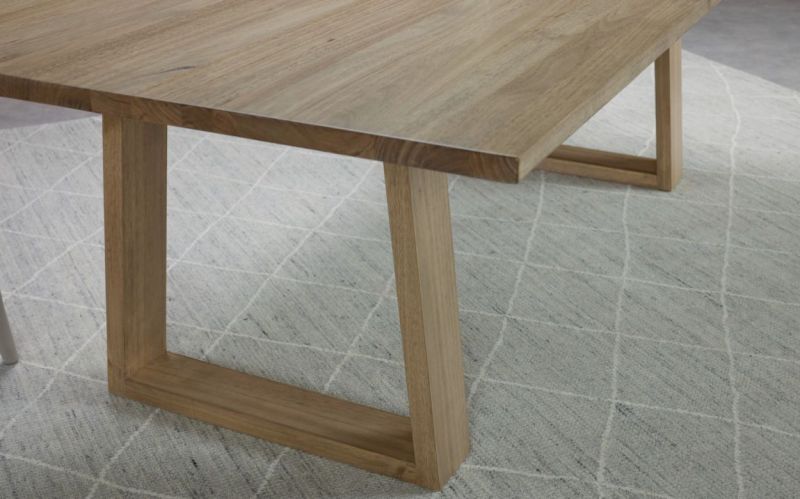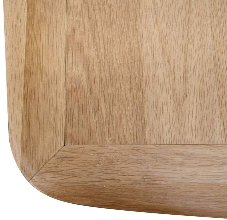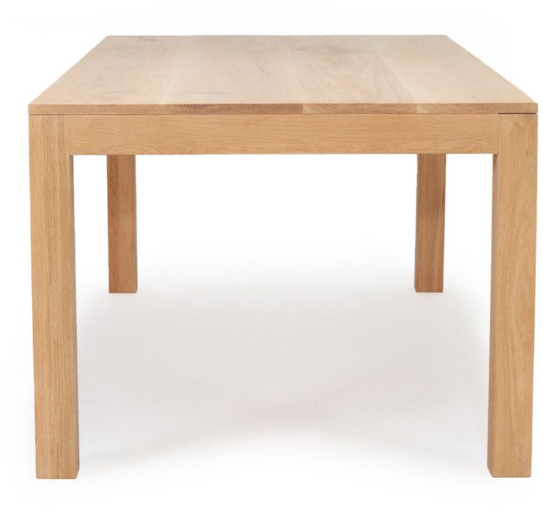 The St Ives Dining Table, crafted from 100% American Oak, showcases a refined smooth raw finish. Sanded to an exceptionally fine texture, this table is free of resin and stain. It is coated with a natural, durable hard wax oil that ensures a tough, hard-wearing surface, resistant to dirt and water. This dining table stands out for its robust construction, making it a lasting addition to your home, ideally suited for enduring use and capable of being handed down through generations.