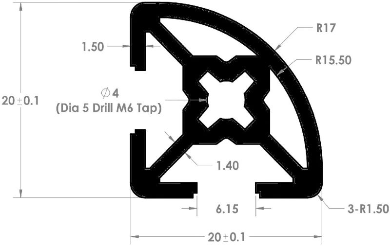 The Dexterous Aluminium Profile 20x20 Radius is a precision-engineered modular framing component designed for light-duty applications where aesthetic appeal and functional strength are equally important. Crafted from premium-grade Aluminium Alloy 6063-T6, this profile offers superior corrosion resistance, excellent machinability, and long-lasting durability, making it a popular choice in automation, prototyping, and custom display structures.