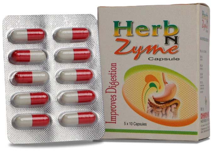 Herb-n-zyme Capsule is a natural digestive stimulant. It increases digestibility of all food types through its digestive enzyme stimulating actions. It is helpful in indigestion, gaseousness, flatulence and abdominal distension