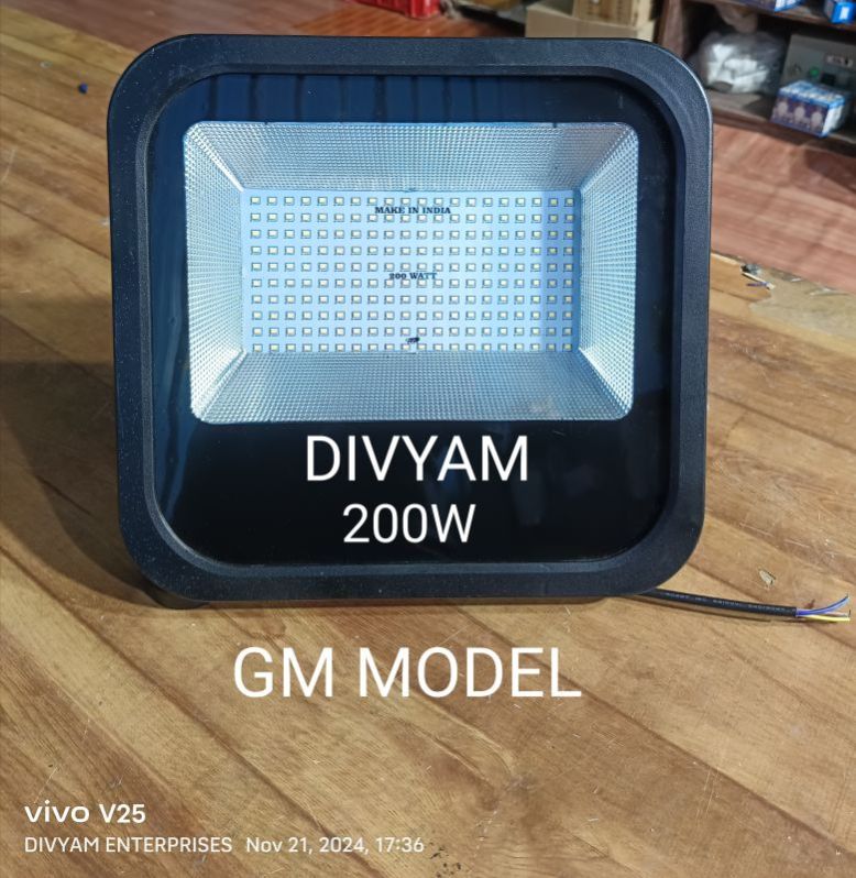 200W LED FLOOD LIGHT UNIQUE MODEL WITH DAIMOND REFLECTOR WITH 2 YEARS WARRANTY, ITS MAKE ALUMINIUM DIE CASTING WITH GALSS MODEL AND HIGH BRIGHTNESS SMD AND HIGH POWER LED DRIVER , CASTING WEIGHT - 1.100KG AND TOTAL LIGHT WEIGHT- 2.965KG.