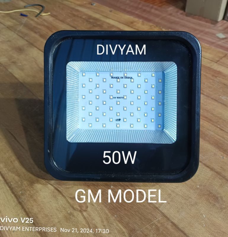 50W LED FLOOD LIGHT GM MODEL WITH DAIMOND REFLECTOR WITH 2 YEARS WARRANTY. ITS MAKE ALUMINIUM DIE CASTING WITH GLASS AND USE HIGH POWER LED DRIVER AND HIGH BRIGHTNESS LED SMD. CASTING WEIGHT-0.400KG AND TOTAL LIGHT WEIGHT- 1.200KG.