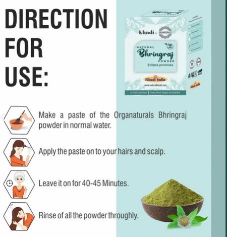 | Rinse off the powder thoroughly with water | After the desired duration, rinse off the Bhringraj powder thoroughly with water. Ensure that all traces of the powder are completely washed out from your hair and scalp. |