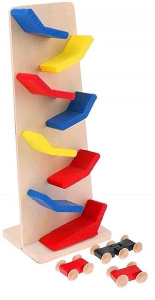 Wooden Small Slippery Cars Race Track Playset- Multi ColorBirthday Gift Toy3 car