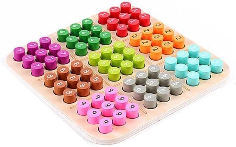 colourful wooden sudoku puzzle board game for adults and family gamesize-9x9multicolour