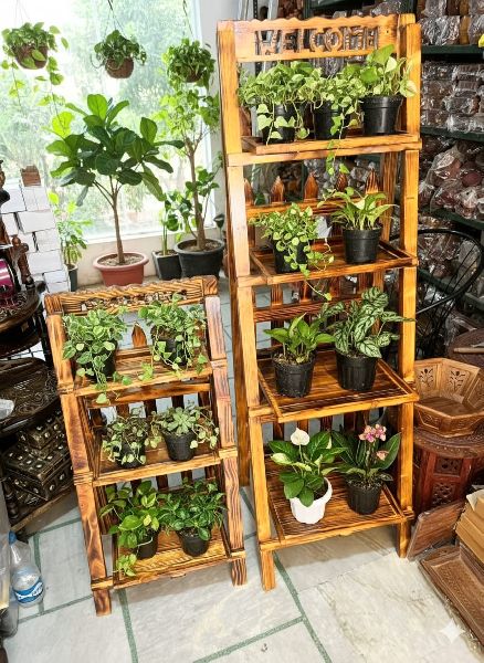 Pinewood Planter & Book Rack Stand it can be used as a flower pot stand, book rack, gift display stand, or decorative shelf.