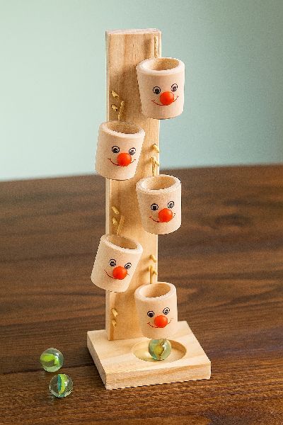 Wooden Toys for Kids Clown Cup Marbles Children's Toys Montessori Wooden Tree Marble Ball Run Track Game for Boys and Girls-Multi Color, Pack of 1 Set