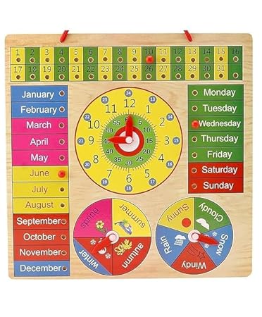 Wooden Calender Clock Board for Kids Multi ColorEducational Boardmonth NameYear Name