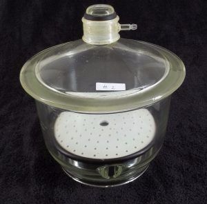 Glass desiccators have the best visibility without exposure when drying, preserving, or storing sensitive samples. Circular designs are most common, but Abderhalden linear drying apparatuses are also available. The uniform, thick-walled construction maintains tight seal while the overall shape allows easy content retrieval. Fix a vacuum to the stopcock to accelerate drying process. The reusable, glass desiccators come in different volumes to fit any application procedure. Specially designed enclosures do not require flange maintenance greasing.