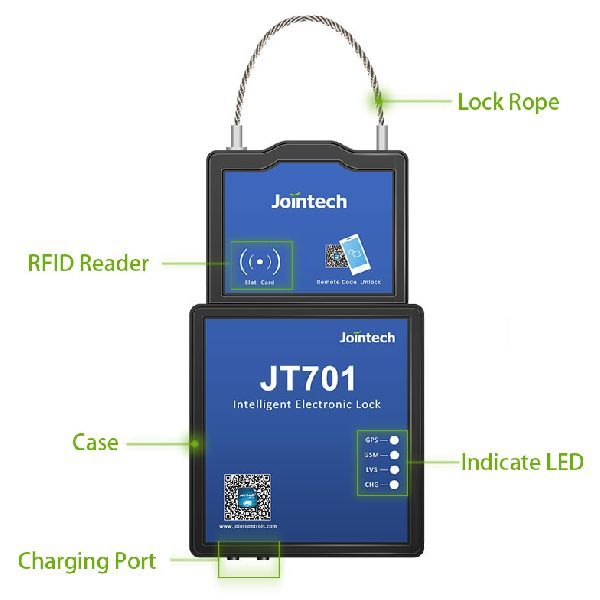 JT701 is a intelligent tracking lock device for asset management system. The main feature can be list as: Designed unlock not by key, but by RFID/remotely password; With big capacity battery, long working time; Built-in wireless module, real time online monitoring ; Built-in GPS module, global locating ; safety control, illegal unlock alarm and so on. The application can be container, trailer, Van type trucks and other types of trucks remote monitoring system.