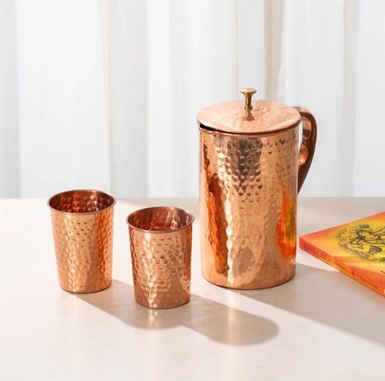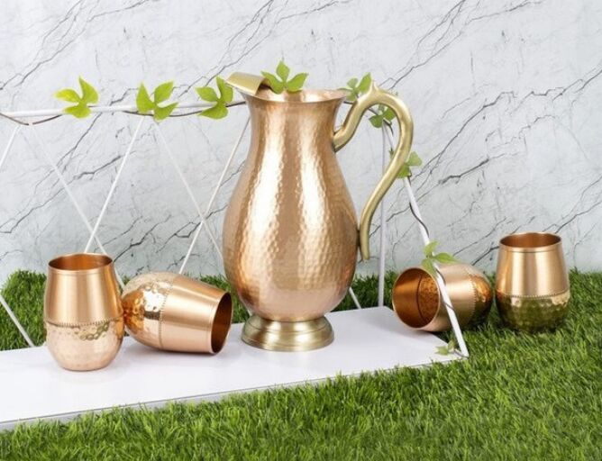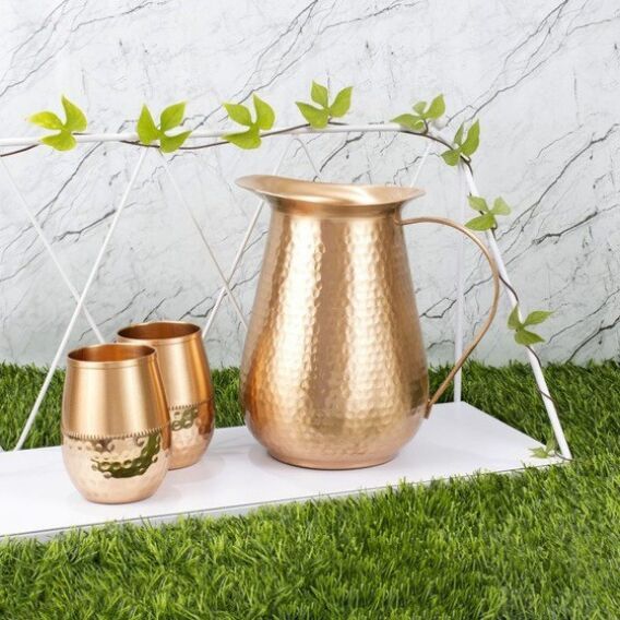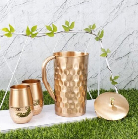 We offer the best product range of Copper Hammered Jug with Glass and COPPER HAMMERED JUG.