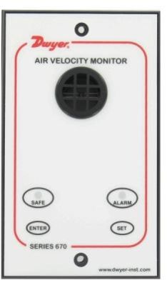the model 670 fume hood monitor continuously senses air flow through the face of the fume hood, ensuring safe levels of fresh air are exhausting. The 670 provides a highly accurate hot wire sensor to detect very low flows common on fume hoods. The model 670 comes with everything required to quickly install the unit including a mounting bracket, 24" of tubing for connecting to the inside of the hood wall and a 120 volt ac power adapter.