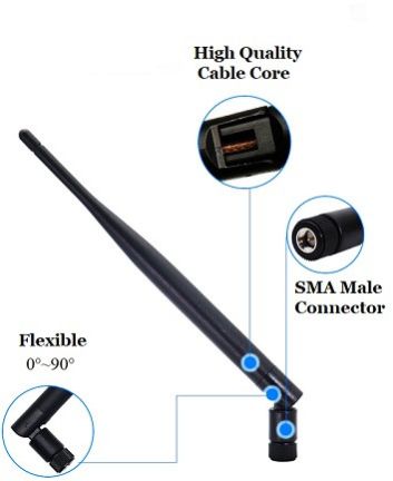 Gain (5dBi): The antenna offers a gain of 5dBi, providing a moderate boost in signal strength and coverage compared to a standard 0dBi antenna. A 5dBi gain ensures a wider coverage area and improved signal reliability, making it ideal for use in environments where signal strength is important.