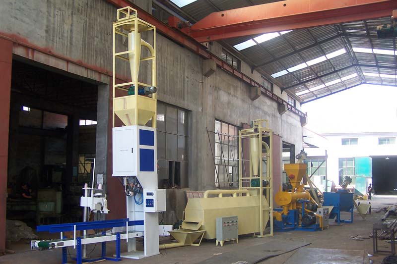 Raw material---crushing system---mixing system---extruding system----drying system----flavoring system--packing systempet food generally consists of meat, meat by products, cereal, grain, vitamins, and minerals. General grains, such as soybean meal, corn meal, cracked wheat, and barely, are often used to improve the consistency of the products. The meat is mixed with the other ingredients. Dry fish food has a shelf life of about 10 to 12 months. Some manufacturers are adding some kinds of vitamins e and c as natural preservatives.1.production description of fish food line :materials :wheat corn flour, born powder and so on.Final feed: different shapes and sizes of dog food, cat food, fish food, shrim feedcapacity of fish food equipment: 150kgh, 250kgh, 500-600kghconsumption of fish food equipment: low electricity and labor consumptiondesign: with flexible design based on the client's demands, we provide turn key project. Capacity:140-160kgh, 240-260kgh, 500-600kgh