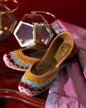 Highlighted by pastel tones and patchwork, this pair would make for a gorgeous addition to your shoe closet. It features stunning motifs and double-cushioned padding so that you stay comfortable as you enjoy festivities. You can pair this jutti with your pastel traditional wear