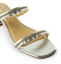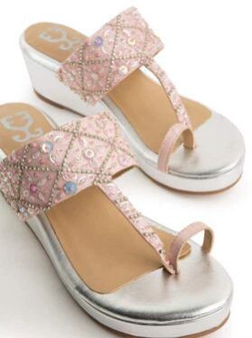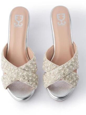 Crafted with crystal beads, a touch of pearl, and with silver stone work on straps, this pair has all the cool factors, making it a must-have party companion. You can style it with both your western and traditional wear.