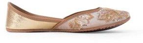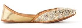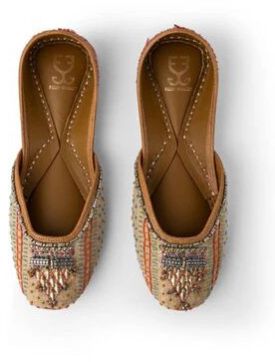 Adorned with intricate gota patti work - a traditional Rajasthani technique, this kolha flat celebrates the fine craftsmanship. The pair also boasts paisley detailing and a sprinkle of mukaish accents making it an elegant choice for your many events