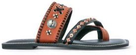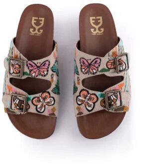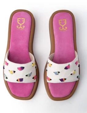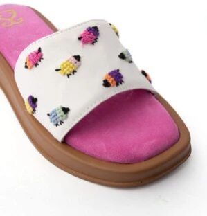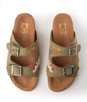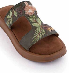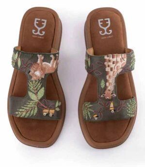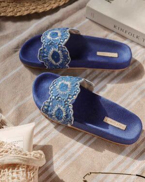 Slide into a comfy pair that can take you from day to night effortlessly. With a suede base and bird and floral motifs, these two-strap sliders are a perfect pick for nature walks and relaxing vacays.