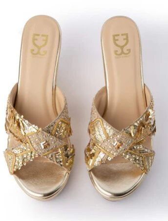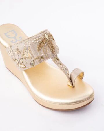 A gorgeous and comfy style to make you shine, this wedge is crafted with intricately-done golden embellishments. You can style it with your lehengas on a wedding and festive occasion. Add it to your closet now.