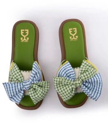 Super Light. Super Comfy. Super Cool, these sliders are designed to give an edge to your style statement and make you stand out. Highlighted by gingham-patterned bow in green and blue tones, this pair is crafted to make your everyday style sunnier.
