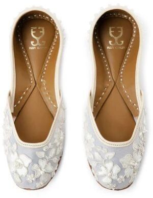 Beautifully detailed with hand-embroidered chikankari work with sequin on an ivory base, this jutti can be styled with both ethnic and western outfits. Slide into them and be a trendsetter wherever you step out.