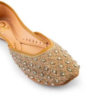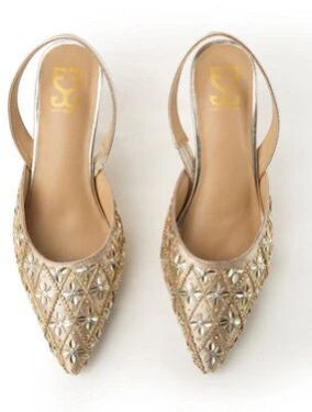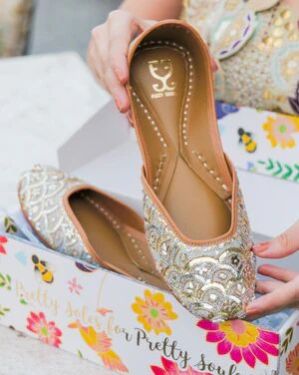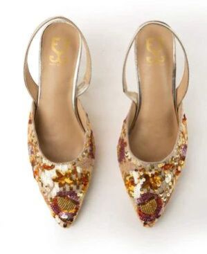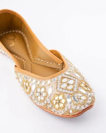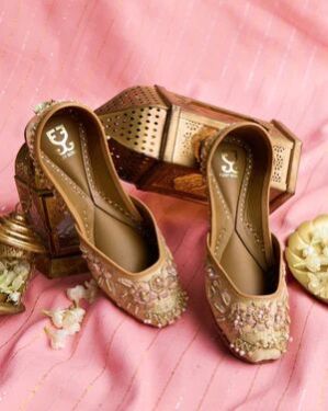 Look impressive in the heels that feature intricate mirror-work, gold and silver zari work, and stunning beads detailings. You can style it with your saree and channel the diva energy.